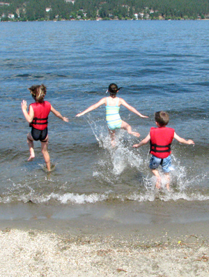 After the younger kids strapped on their lifejackets and my oldest daughter Bri put on her goggles, we rushed into the lake and immediately felt the cool relief of the water. Right off the bat, Bri suggested we do some fishing.